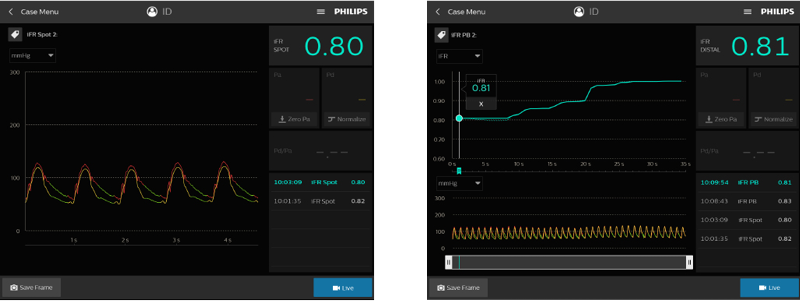 iFR — это ведущий физиологический показатель, измерение которого не требует гиперемии. Он предназначен для измерения давления в ходе диагностических и интервенционных процедур. Предлагается только компанией Philips. iFR является научно обоснованной методикой, которая улучшает результаты, экономит время и уменьшает дискомфорт пациента5, 10, 11. Ко-регистрация с iFR позволяет переносить физиологические измерения непосредственно на ангиограмму, повышая качество контроля за проведением процедуры. • Картирование падения физиологического давления на ангиограмме для лучшего распознавания очагового, серийного или диффузного заболевания. • Точная оценка тяжести, локализации и длины поражения. • Измерение длины без использования трудоемкого устройства для протяжки • Воздействие виртуального стента на физиологические показатели.
